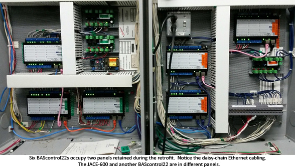 "The BAScontrol22 demonstrated its versatility in that it could accommodate a wide variety of applications including AHU-VAV, AHU-CV, AHU-multizone, boiler, chiller, cooling tower, fan coil and unit heater control with the same model controller," said Jon Vietti of DDC Support Services. "Sedona programming has the same look and feel as Niagara thereby simplifying control sequence programming."