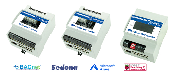 The BASpi Series includes next generation controllers built on open hardware and open software technologies. It harnesses the power of the popular Raspberry Pi, making it one of the most powerful controller platforms in the building automation market today. Contemporary Controls has designed a series of BASpi controllers by enhancing and ruggedizing the Raspberry Pi to a building automation controller. Packaged in a compact DIN 4 housing with industry standard screw terminals and power input, three BASpi versions exist: